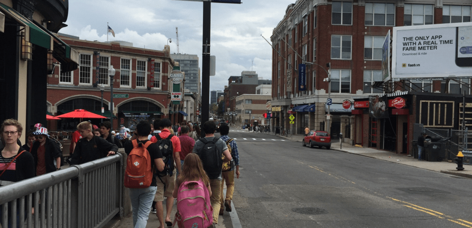 Commuting to the Fenway area during baseball season can be daunting when the Sox are in town. On-street parking is banned on Brookline Avenue and surrounding streets as early as four hours before a game, while garage parking nearby is at least $40. The Green line train stops nearby, but is packed cheek-to-cheek with fans (and commuters) at gametime: not a pleasant experience in 90+ degree weather. Though the tough commute doesn’t deter Red Sox fans – it may even be part of the experience for some – a smoother version would be welcomed.